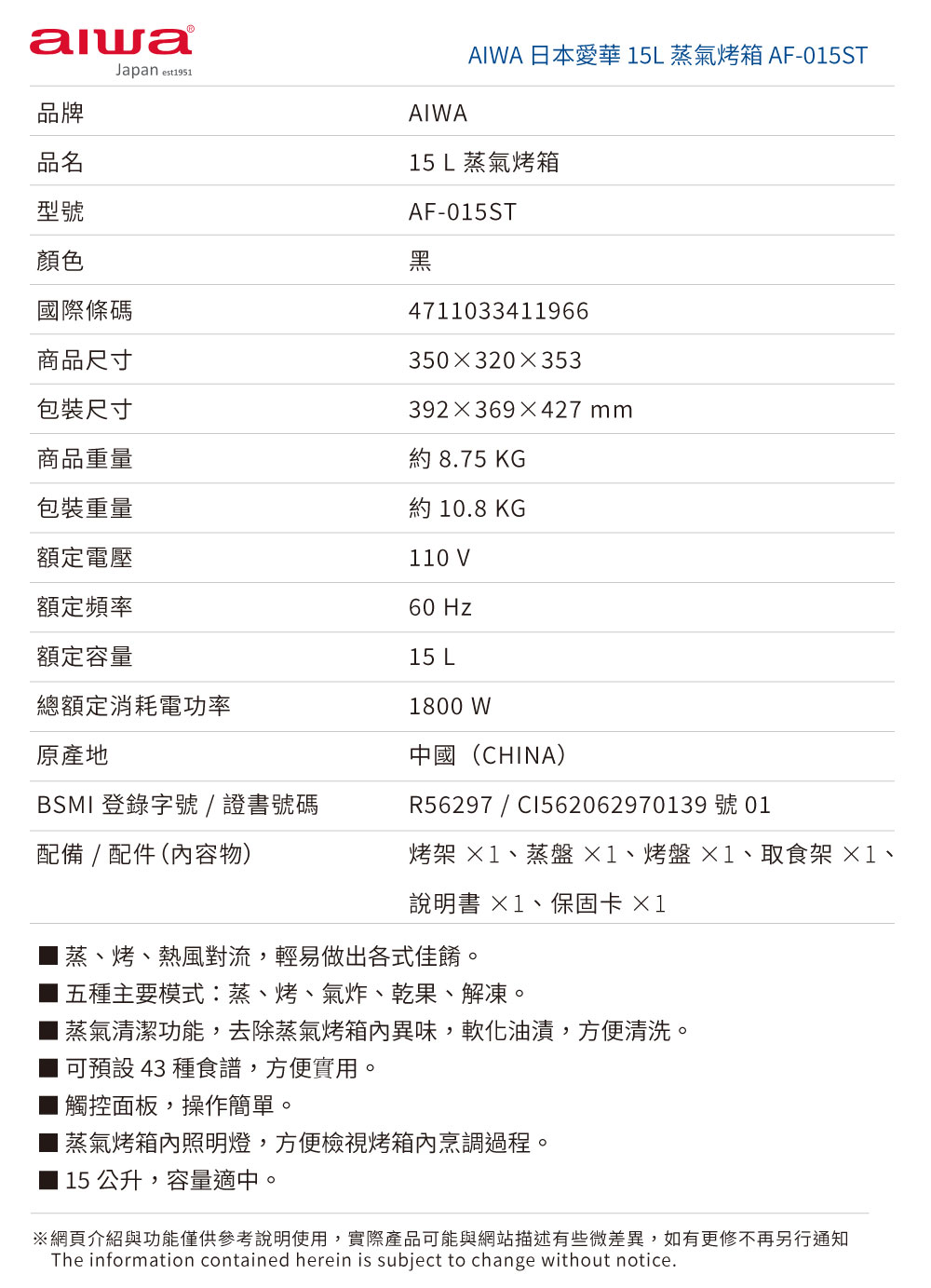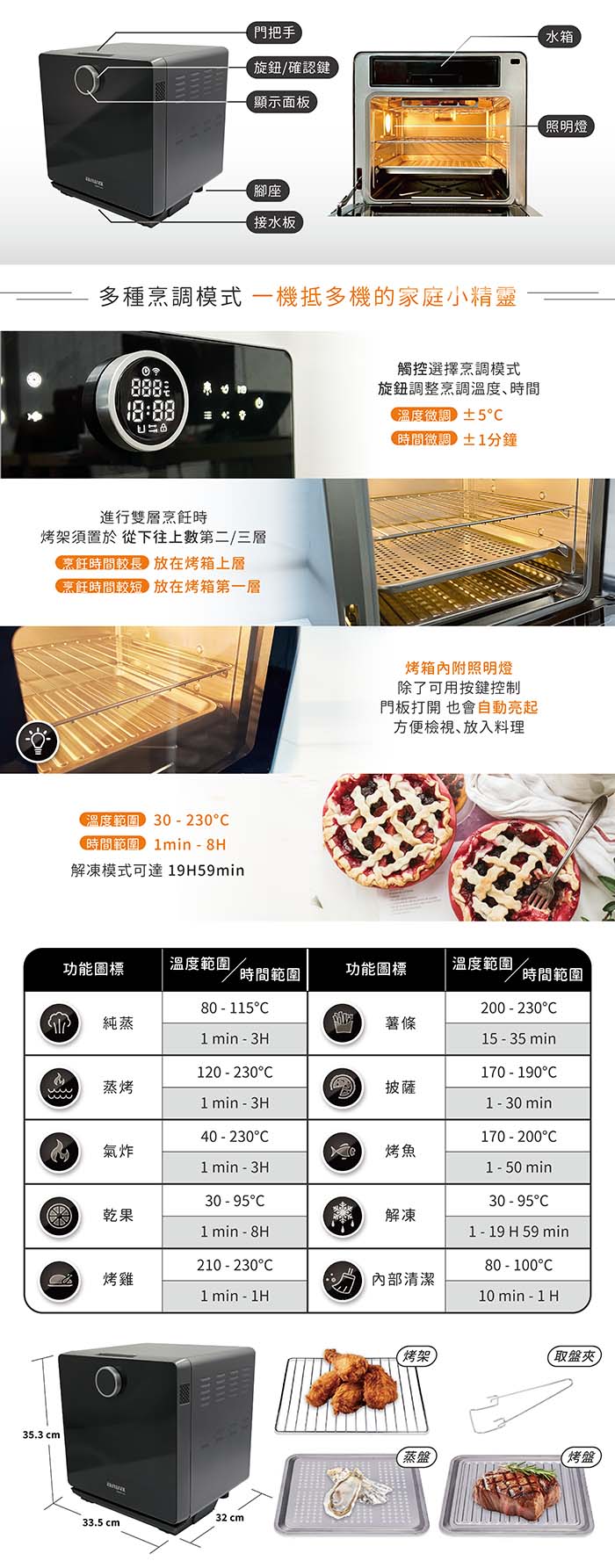 內容物:烤架、蒸盤、烤盤、取食架、說明書、保固卡