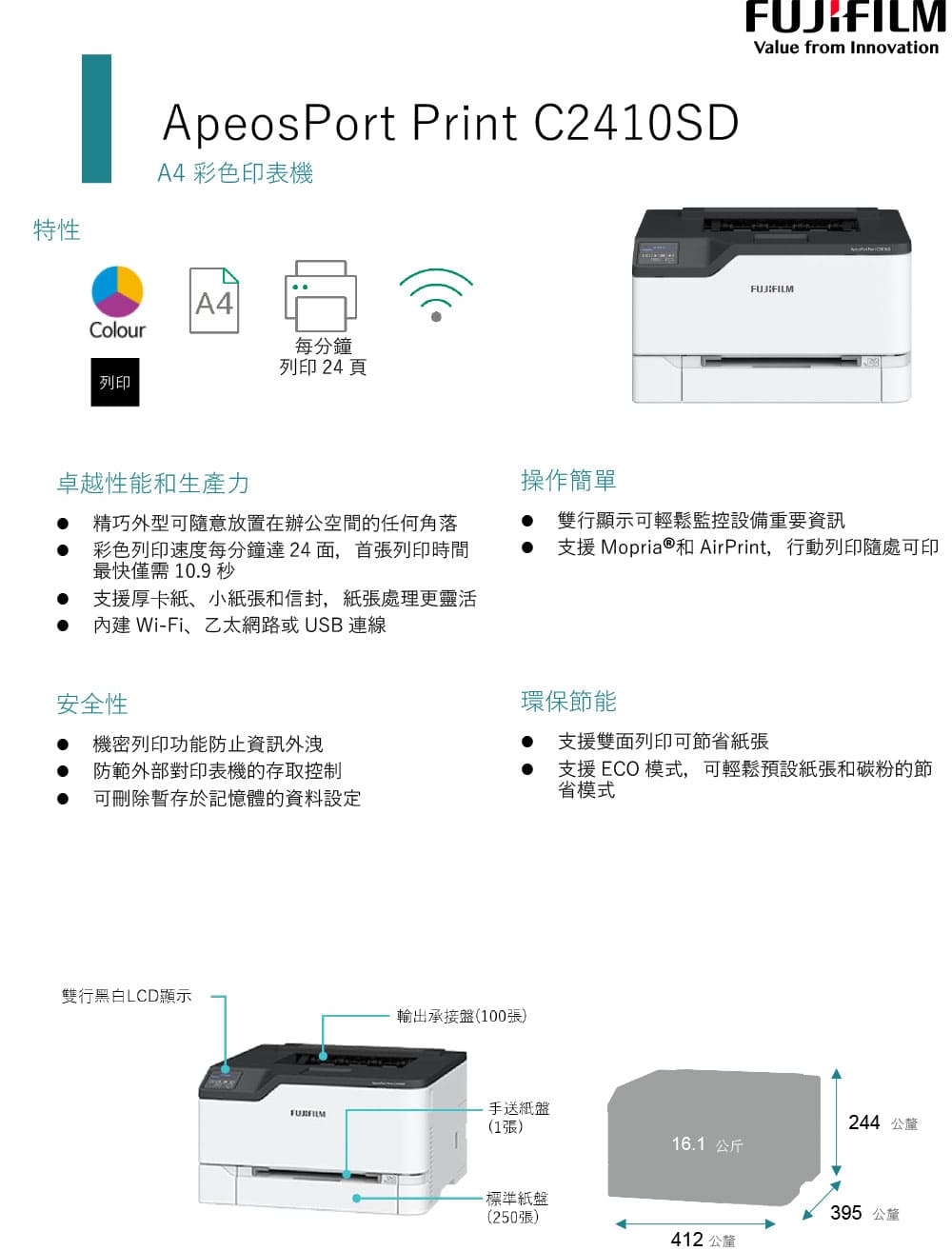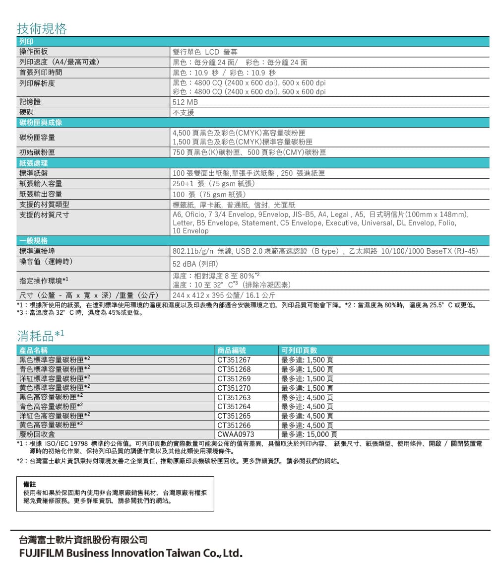 彩色列印速度每分鐘達24面,首張列印時間最快僅需10.9秒