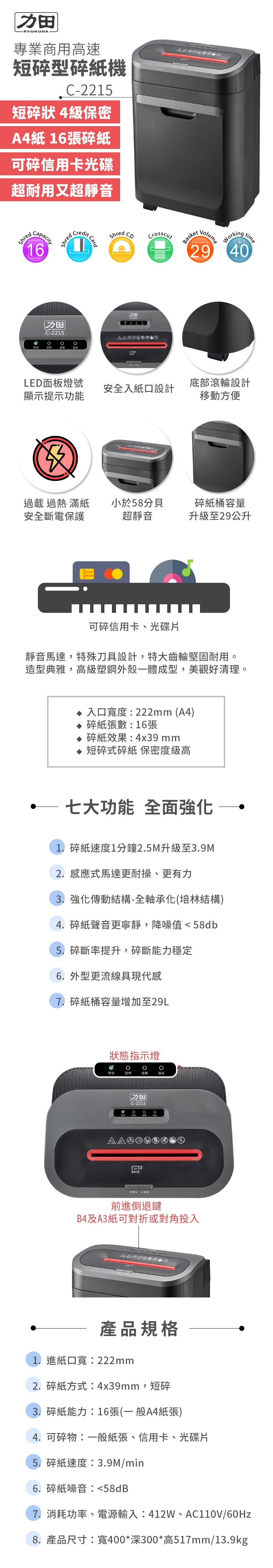 1.碎紙速度1分鐘2.5M升級至3.9M