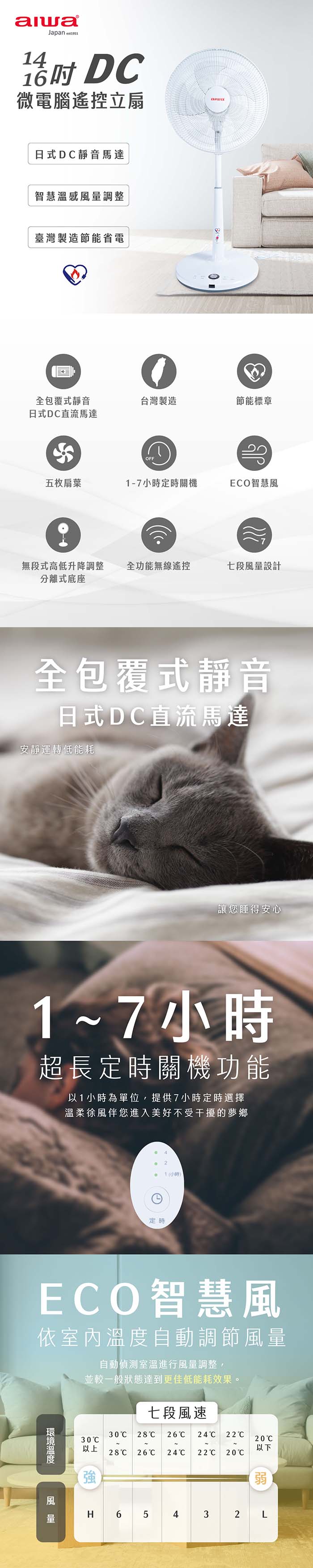 14吋五枚扇葉,七段風量設計