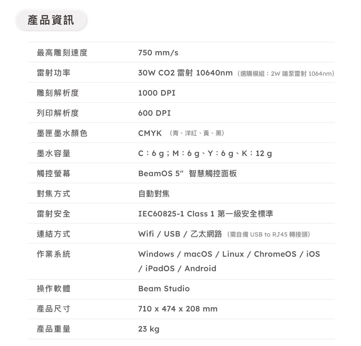 【預計12月中陸續出貨|贈旋轉軸套件至11/24止】FLUX beamo Ⅱ 彩色列印雷射雕刻機(30W) 雷射切割機|雷射雕刻/切割、彩色列印