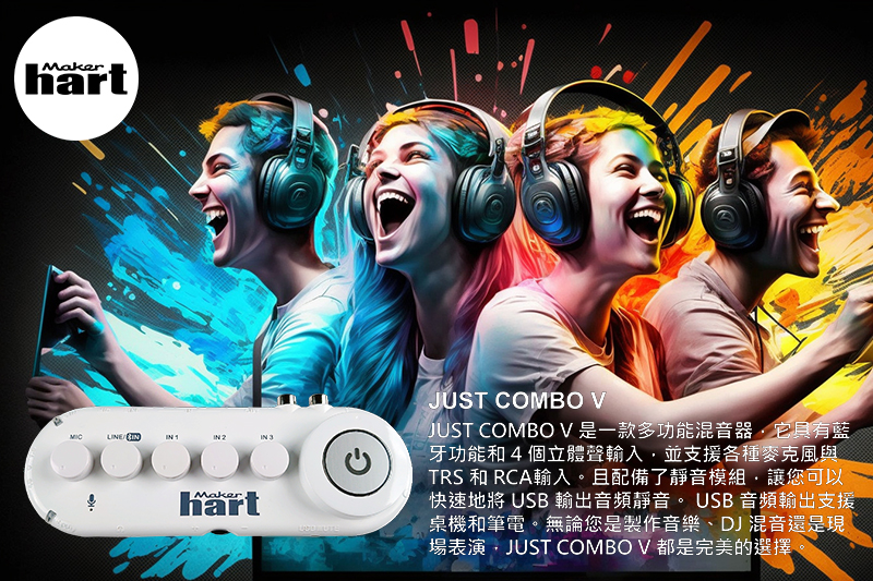 ■ 立體聲4輸入/2輸出/MIC輸入 : 可同時連接4個音訊輸入,每軌有獨立的音量調整鈕,可由耳機與喇叭輸出。