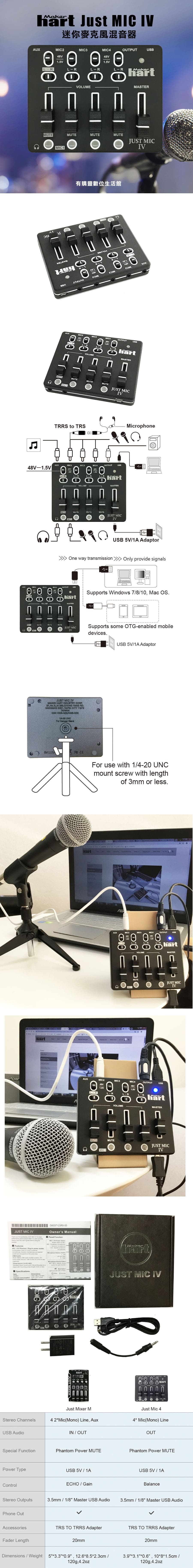 ※使用JUST MIC IV,請務必連接USB 5V/1A電源,才可使用。