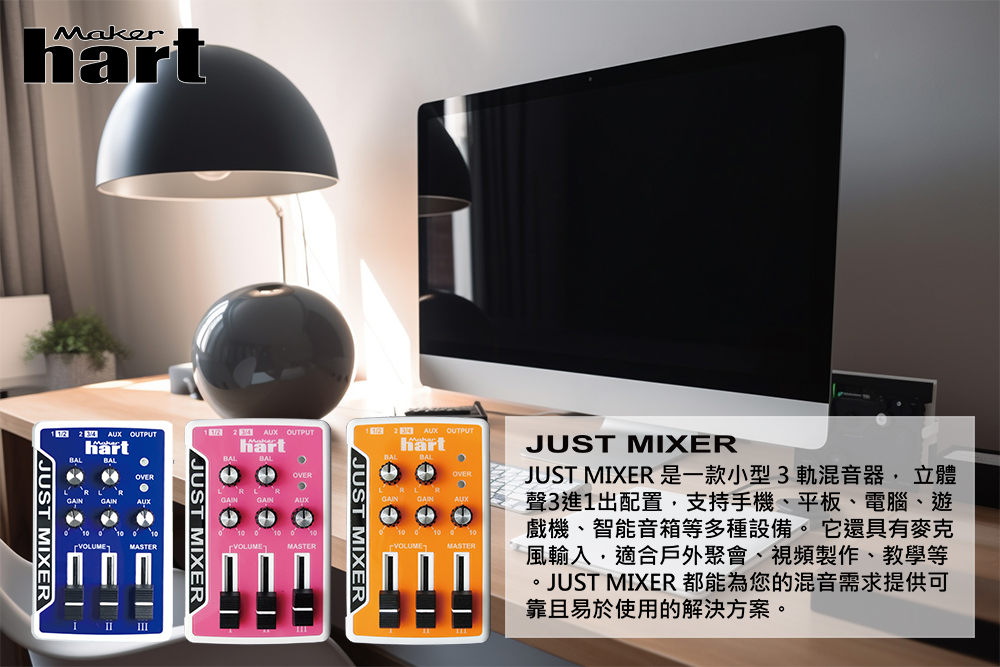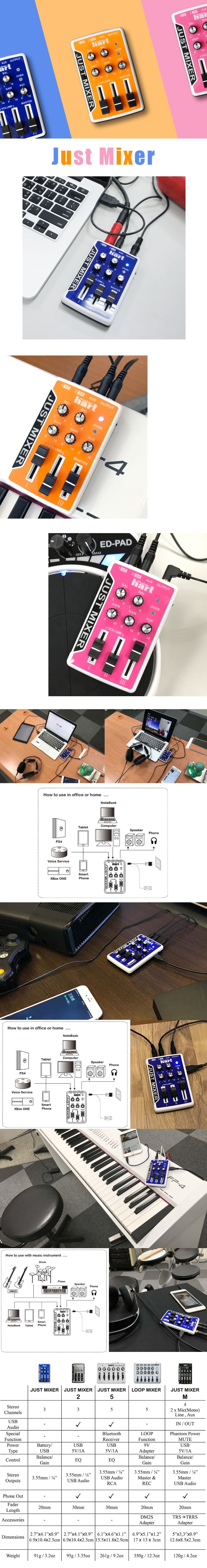 ■ 立體聲3輸入/1輸出裝置:3個立體裝置至JUST MIXER最多可連接5個單音裝置。