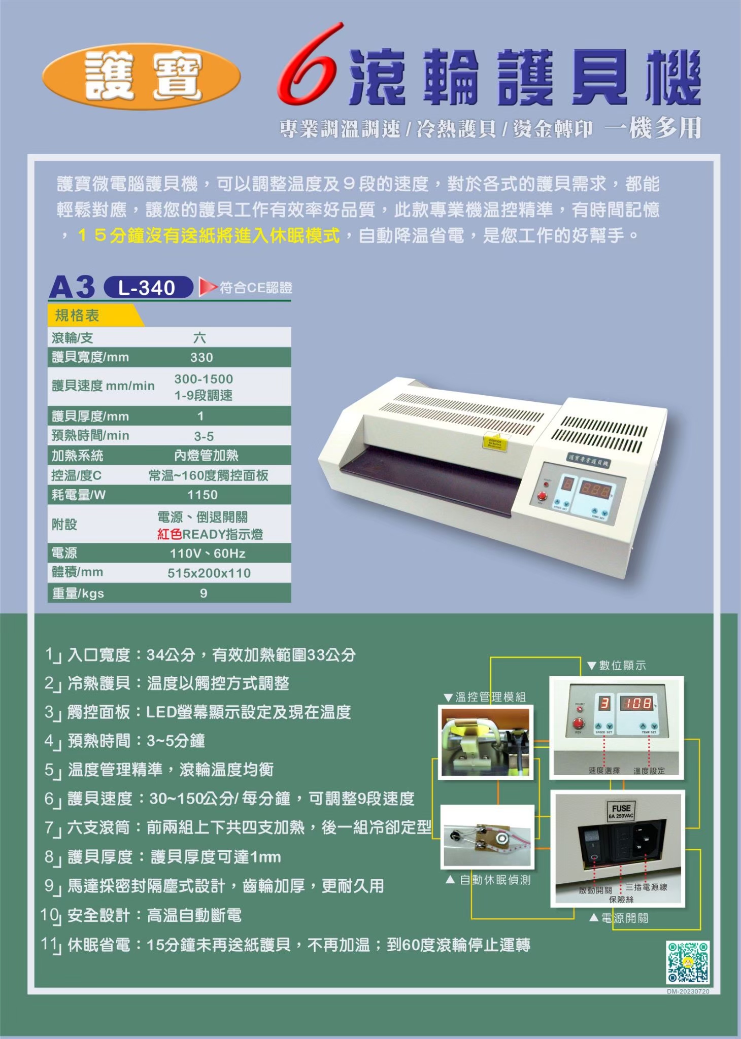 ■ 滾輪:六支(前二組上下共四支加熱,後一組冷卻定型)