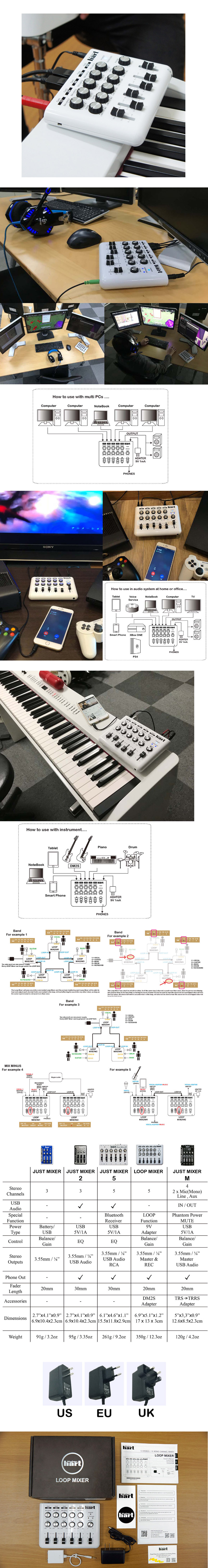 ■ 立體聲5輸入/2輸出裝置 -5個立體裝置至LOOP MIXER最多可連接10個單音裝置。