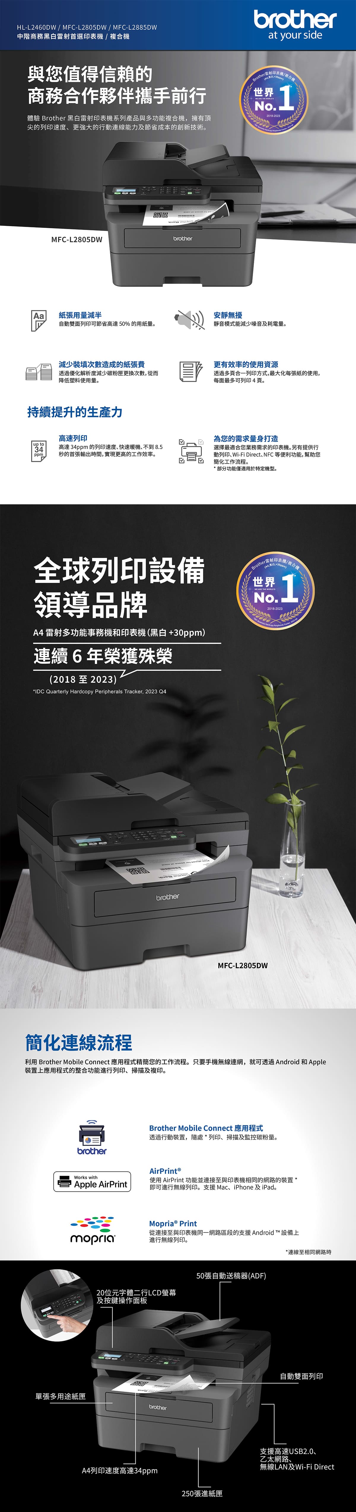 自動送稿機(ADF) :高達50張 (普通紙- 80 g/m2)