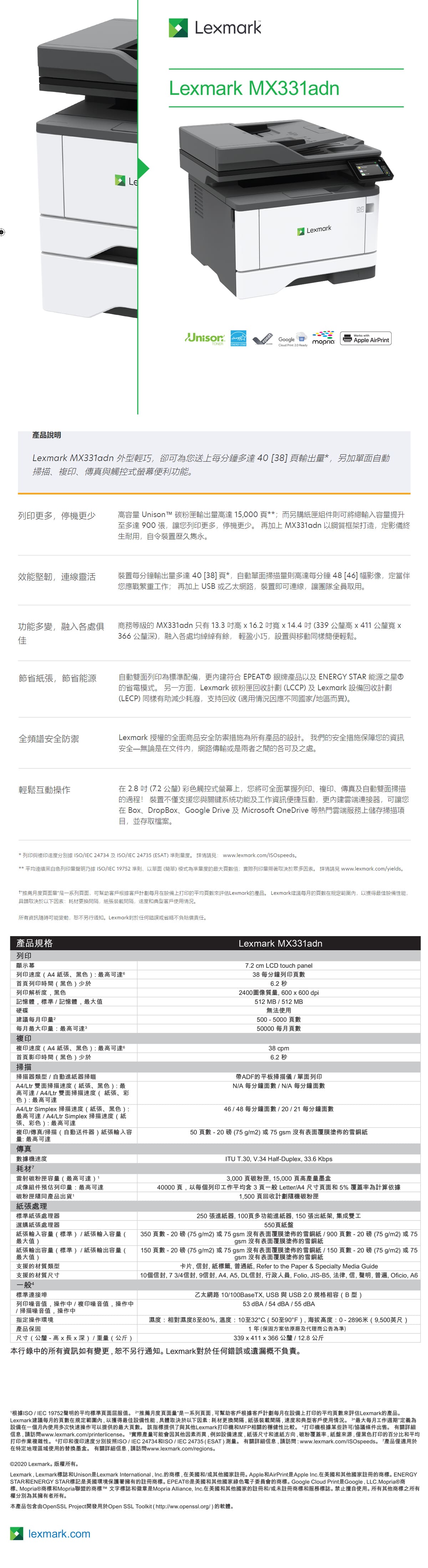 通過Mopria®列印服務和Mopria Scan提供支援。