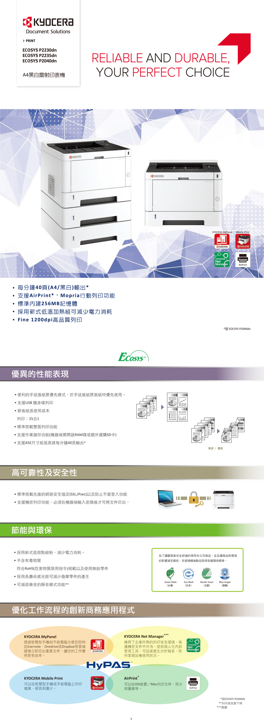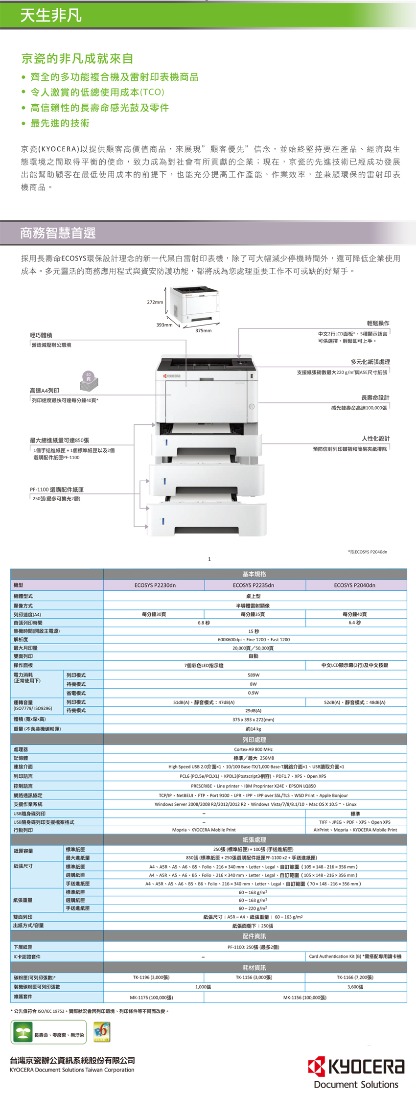 列印語言:PCL6 (PCL5e/PCLXL)、KPDL3(Postscript3相容)、PDF1.7、XPS、Open XPS