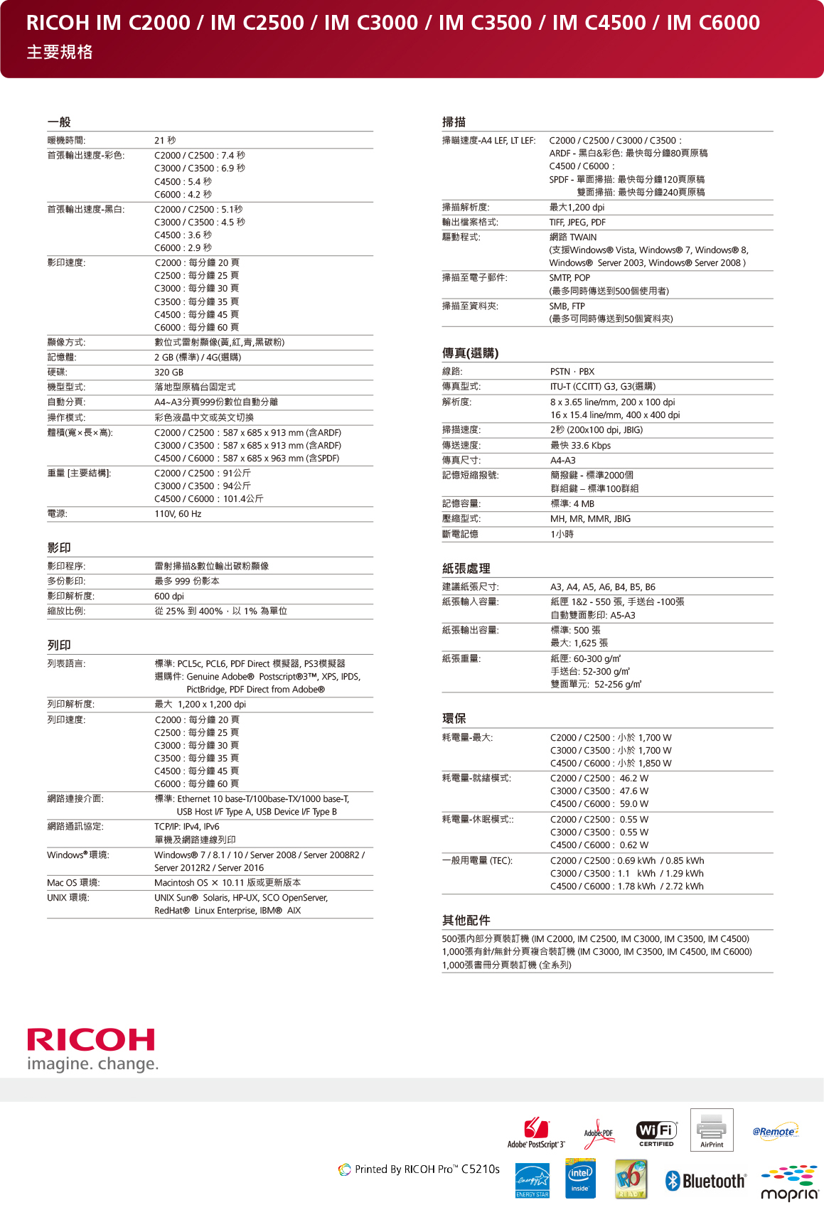 易於使用的RICOH IM C2500 彩色A3智能彩色多功能事務機(MFP)提升性能和工作效率。RICOH Always Current Technology(ACT)隨著韌體升級、多功能事務機具備功能及時更新。依據您的事業成長需求,持續享有擁有最新科技的智能多功能事務機。