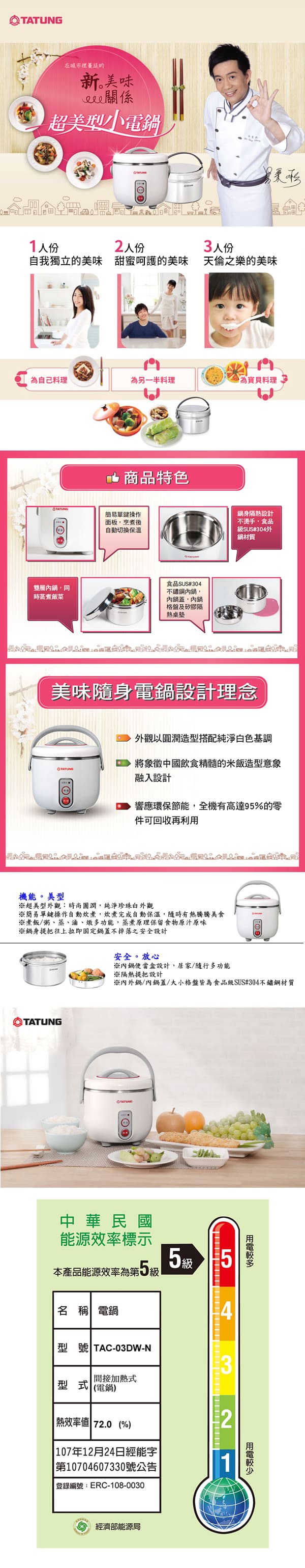 TATUNG大同 三人份超美型小電鍋-珍珠白