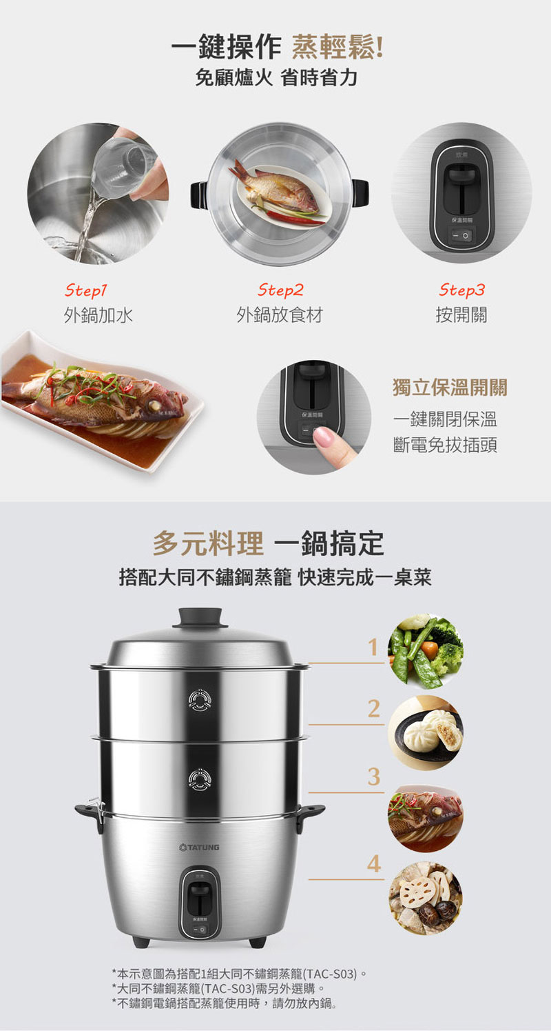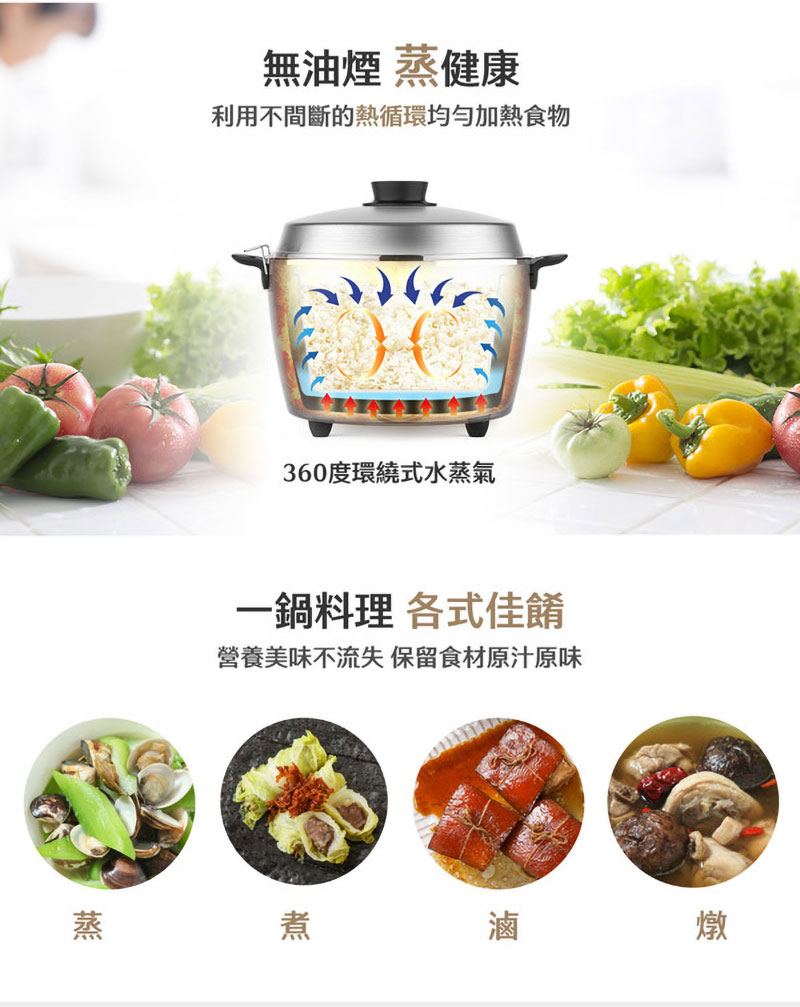 多元料理,煮飯/粥、蒸、滷、燉多用途