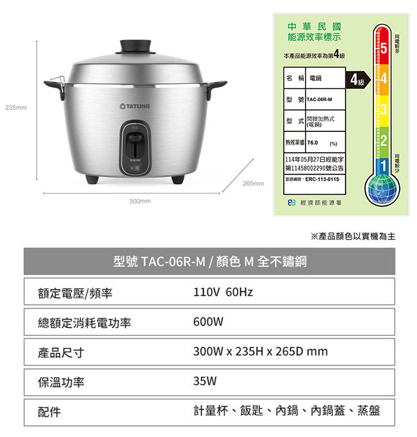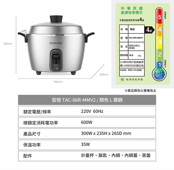 ◆此機型有保溫開關,TAC-06R-MM(110V)電源線與主體為分離式,TAC-06R-MMV2L(220V)電源線接頭為固定式電源線