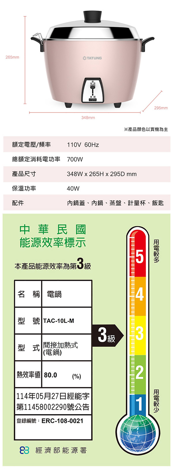 10人份電鍋,珍珠粉紅外殼