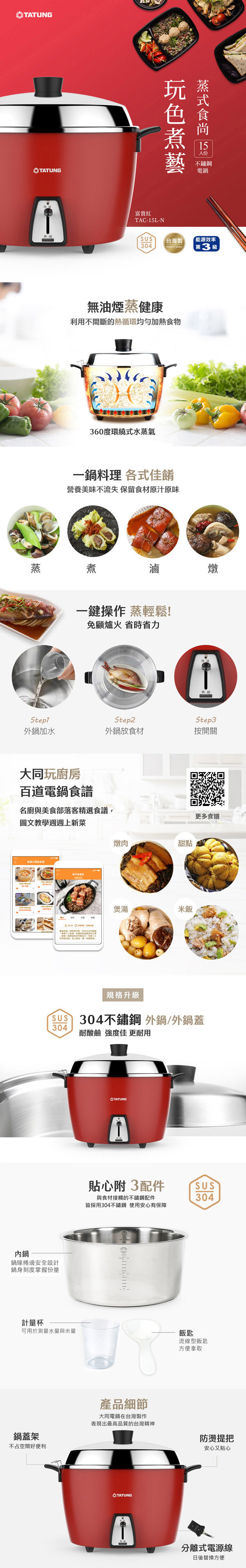 多元料理,煮飯/粥、蒸、滷、燉多用途