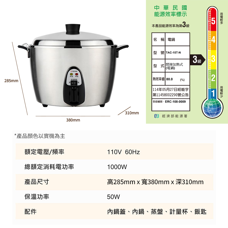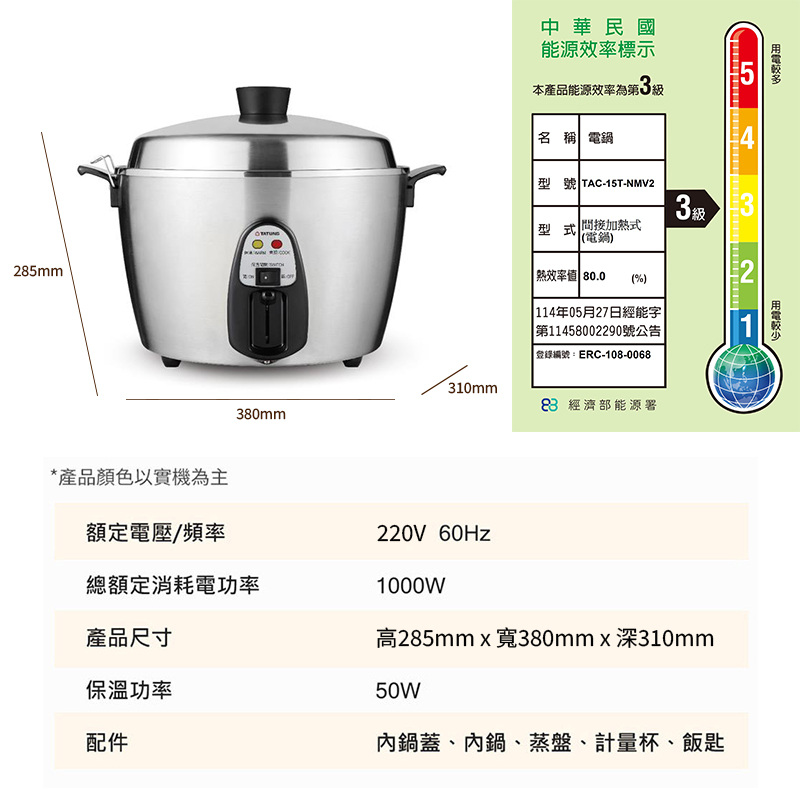 ◆此機型有保溫開關,TAC-15T-NM(110V)電源線與主體為分離式,TAC-15T-NMV2(220V)電源線接頭為固定式電源線