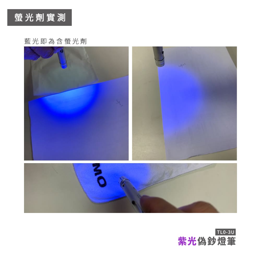 ■ 檢查假票據、身份證、洗光滌劑、化妝品等,任何含有螢劑之物品