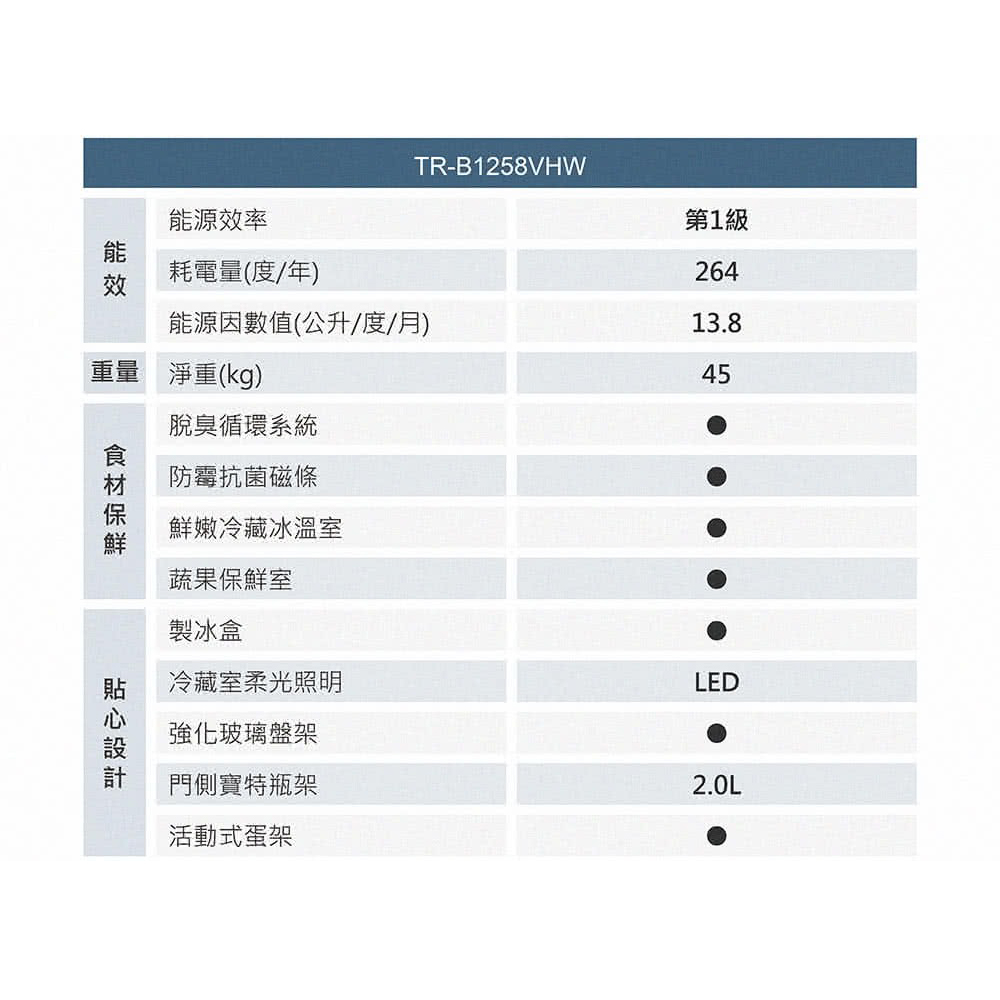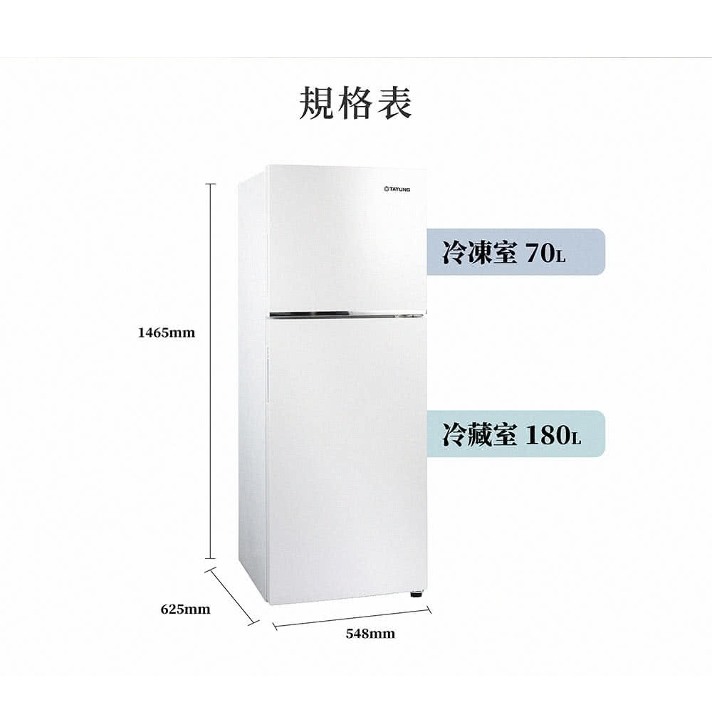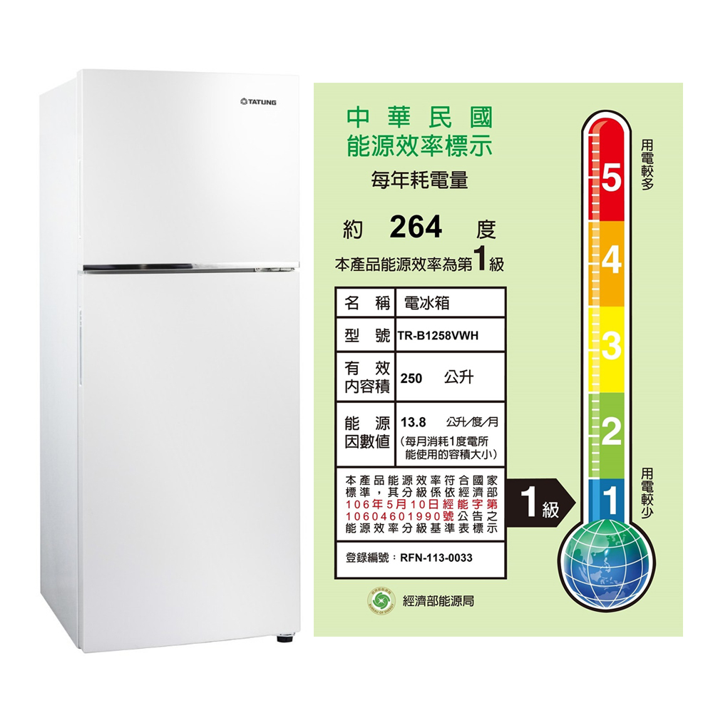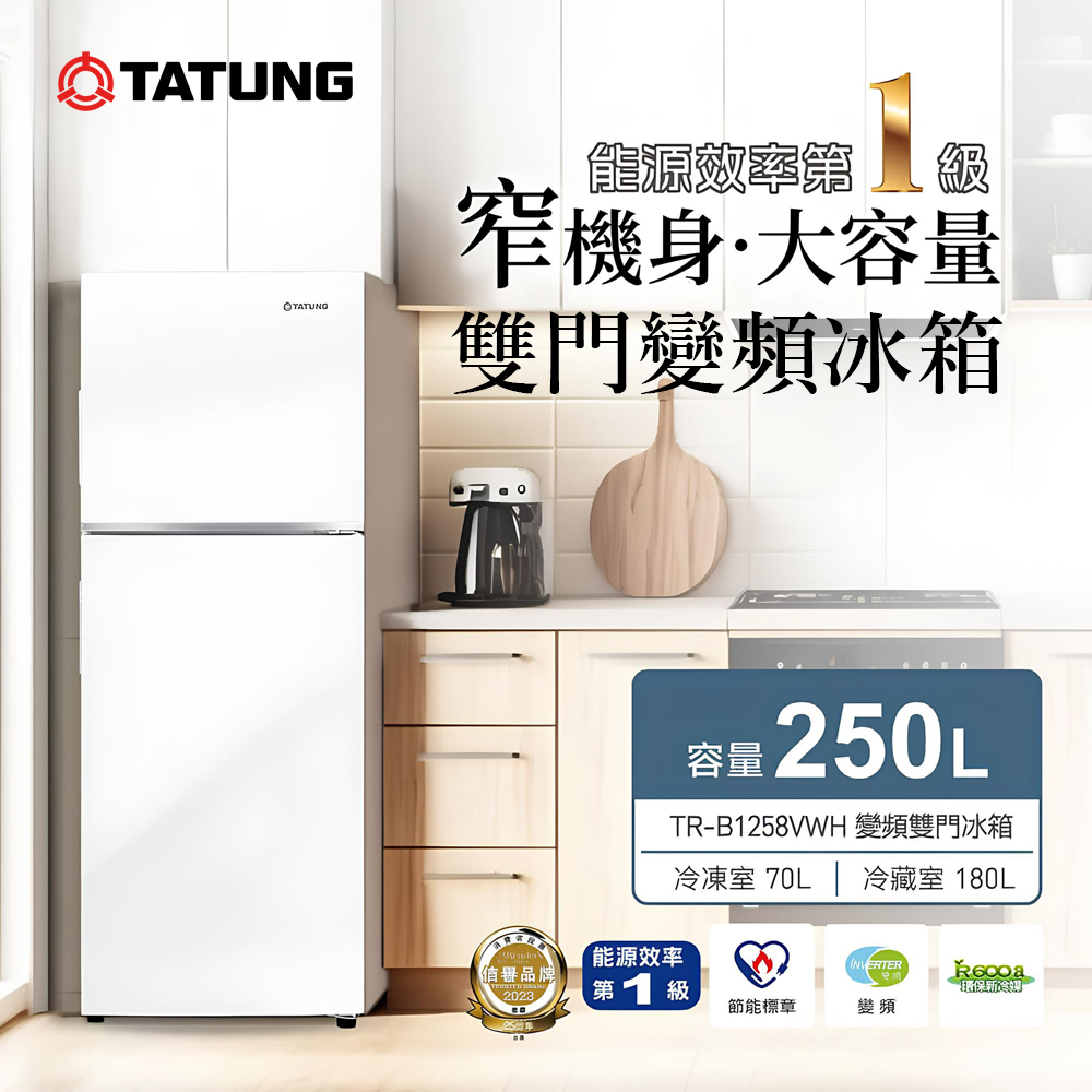 TATUNG 大同 250公升雙門變頻冰箱 TR-B1258VWH